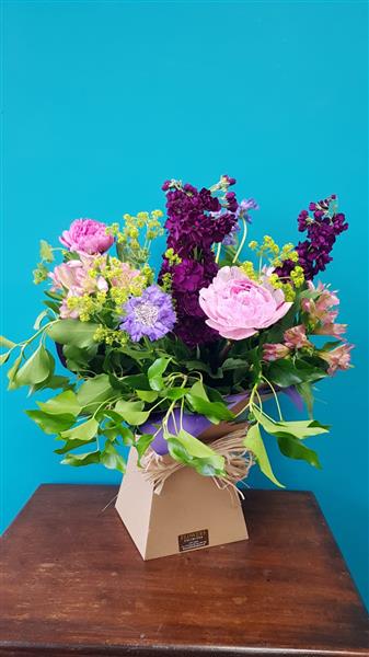 Help us celebrate 2021 British Flowers Week from 14th to 20th June. We'll deliver a mixed bouquet which may include any of the following beautiful British grown flowers - stocks, pale pink peonies, alstromeria, scabious, nigella, and sunflowers. Please let us know if you have any preferences.