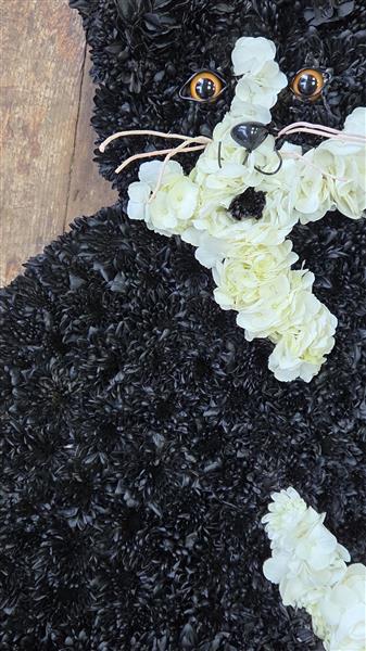 The cat in this image is black and white, but please specify the colour of your cat and if it needs a collar.