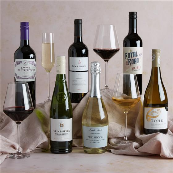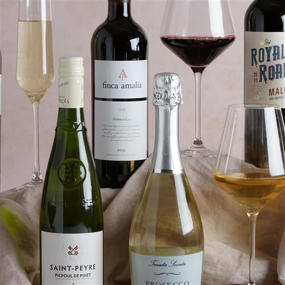Tenuta Alba White Prosecco Spumante DOC 75cl, 75cl Finca Amalia Rioja Tinto 2017,Royal Road Malbec, Gauchezco Estate Malbec 75cl USD, St Peyre Picpoul de Pinet 2019, 75cl Tohu Sauvignon Blanc NZD, Six Bottle Transit Box.