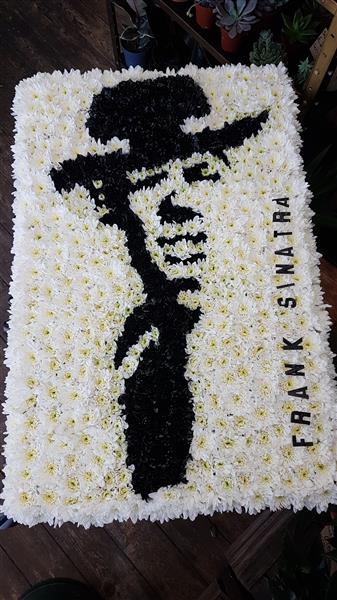 Ol Blue Eyes created from flowers. If there is a diffrent icon you would like created out of flowers, please just get in contact and our team of florists will be able to advise.