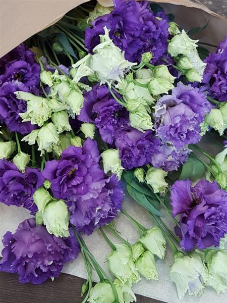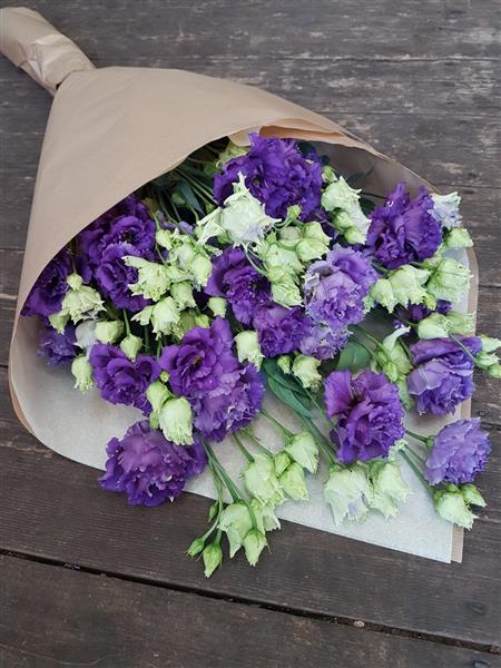 Just Best Purple Lisinathus. Wrapped in paper and tissue.