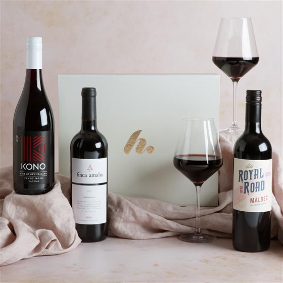 75cl Finca Amalia Rioja Tinto 2017, Royal Road Malbec, Kono Pinot Noir NZD, Large Gift Box.
