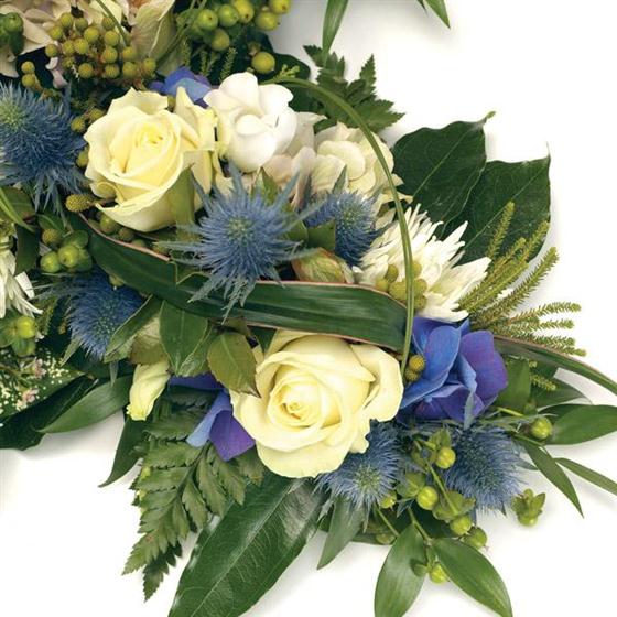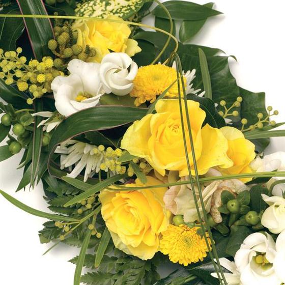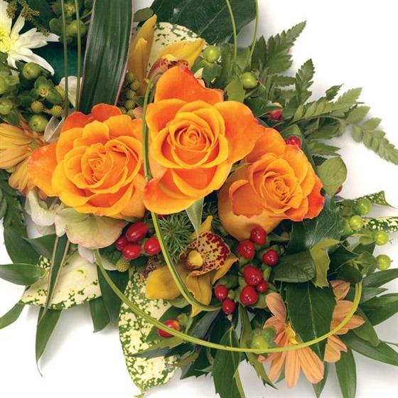 Loose cross including Roses, Gerbera, Chrysanthemums and complementary foliage. Please choose your colours.