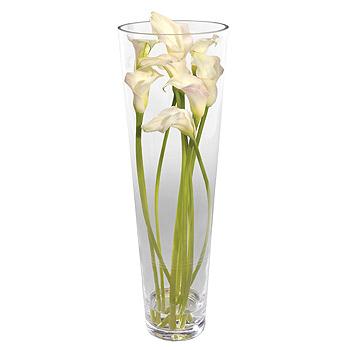 A stylish high glass cone vase featuring white Calla lilies.